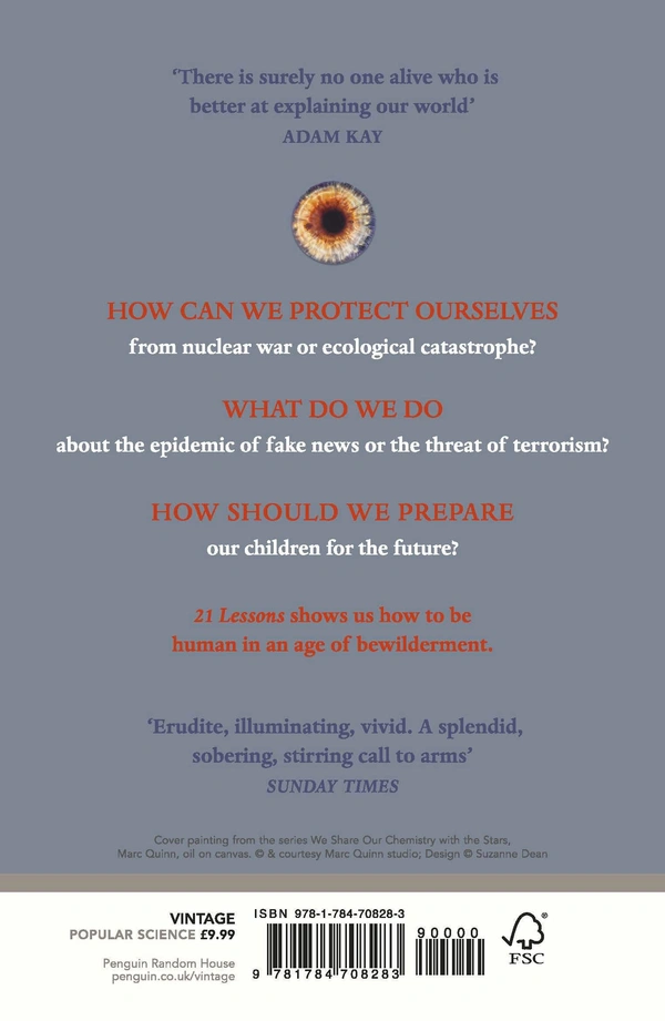 **THE NUMBER ONE BESTSELLER**In twenty-one bite-sized lessons, Yuval Noah Harari explores what it means to be human in an age of bewilderment. '21 Lessons is, simply put, a crucial book' Adam KayHow can we protect ourselves from nuclear war, ecological cataclysms and technological disruptions? What can we do about the epidemic of fake news or the threat of terrorism? What should we teach our children? Yuval Noah Harari takes us on a thrilling journey through today's most urgent issues. The golden thread running through his exhilarating new book is the challenge of maintaining our collective and individual focus in the face of constant and disorienting change.Are we still capable of understanding the world we have created?'Fascinating... compelling... [Harari] has teed up a crucial global conversation about how to take on the problems of the 21st century' Bill Gates, New York Times'Truly mind-expanding... Ultra-topical' Guardian