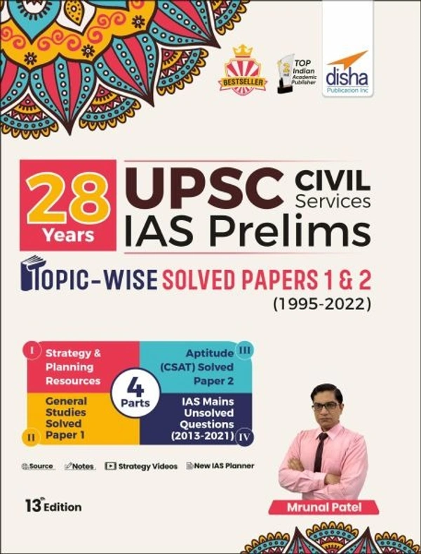 The thoroughly Revised and Updated 13th edition (2 colour) of Disha's BESTSELLER "28 Years UPSC Civil Services IAS Prelims Topic-wise Solved Papers 1 & 2 (1995-2022)" consists of past years solved papers of the General Studies Paper 1 & 2 distributed into 8 Units and 52 Topics.
