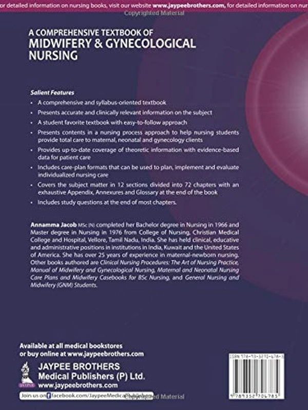 • A comprehensive and syllabus-oriented textbook. • Presents accurate and clinically relevant information on the subject. • A student favorite textbook with easy-to-follow approach. • Presents contents in a nursing process approach to help nursing students provide total care to maternal, neonatal and gynecology clients. • Provides up-to-date coverage of theoretic information with evidence-based data for patient care. • New chapters on Quality assurance and auditing in maternity nursing’, and ‘Adoption’ have been added.• Includes care-plan formats that can be used to plan, implement and evaluate individualized nursing care. • Includes client education boxes and nursing tips boxes for easy learning.• Covers the subject matter in 12 sections divided into 72 chapters with an exhaustive Appendix, Annexures and Glossary at the end of the book. • Includes study questions at the end of most chapters.