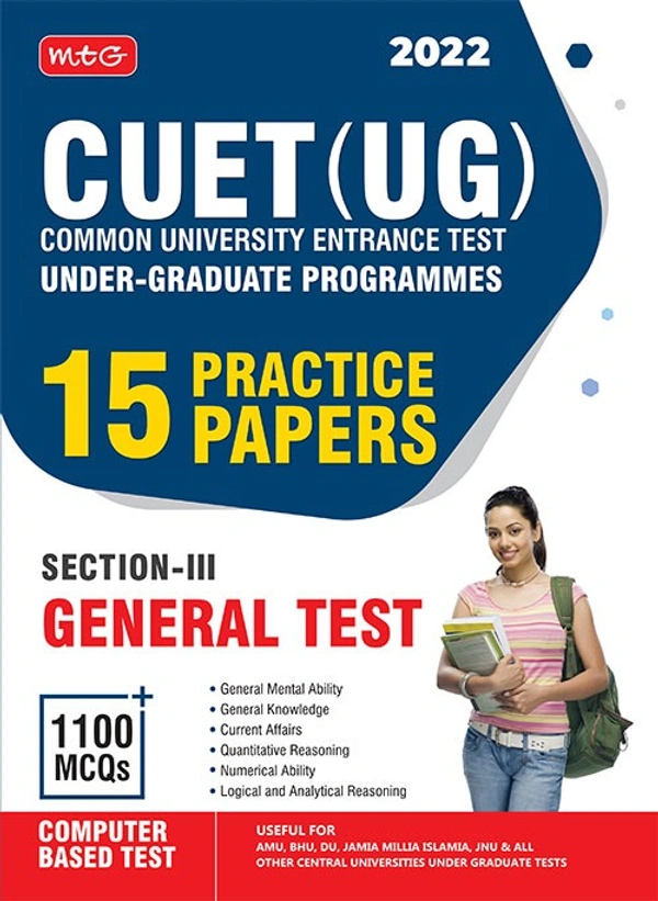 MTG���s CUET UG General Test 15 Practice Papers were designed to aid students in their preparation for the final General Section of the CUET. The practise papers��� questions are based on the latest CUET exam pattern, ensuring that students understand the concepts avoiding surprises during the exam. The book will help them understand all of the principles by solidifying their general knowledge, mental aptitude, and reasoning skills. Furthermore, the Practice Papers are based on the most recent CUET 2022 test pattern, as stated in the NTA notification released on March 26, 2022. The following elements distinguish the book as the best and finest Sample Papers for CUET UG 2022 for the practice of the General test.