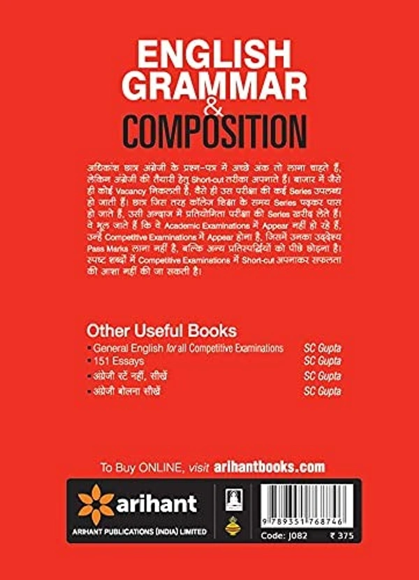 English Grammar & Composition helps aspirants to prepare for various competitive examinations. The book comprises of exercises that not only helps candidates improve their proficiency in English, but also educate them about the proper usage of grammar. Divided in 69 chapters, this book covers all the aspects and elements of grammar, including, , Spelling Rules, Formation of Words Phrasal Verbs, Spotting the Errors, Idioms & Phrases, Word Power, Palindromes, Synonyms, Antonyms, Homonyms, Heteronyms, Pangrams, Group Terms, Foreign Words, Choosing Appropriate Words, Paragraph Writing, Report Writing, Letter Writing, Comprehension, etc. Easy and detailed explanation allows students to understand effortlessly and implement with accuracy. Set of solves questions helps students get a perfect idea about the question pattern and how to deal with the issues that arise during examination. English Grammar & Composition book comes with 550 solves exercises, 7000 solved questions and, 7000 solved questions. Apart from covering all the concepts of grammar, the book also exhibit tricks and techniques to solve various types of questions. About the author: S.C. Gupta is the author of English Grammar & Composition. Keeping in mind the specific requirements of recruitment and entrance requirements, S.C. Gupta with expert team of Arihant takes stand to ensure bright future for deserving students. Content written to furnish the educational needs is result of intensive research. Books are revised and updated almost every year to match the changing examination or question patterns. Arihant has set a benchmark in field of education by introducing resourceful and valuable guidebooks, practice and mock papers.