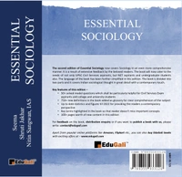 The second edition of Essential Sociology now covers Sociology in an even more comprehensive manner. It is a result of extensive feedback by the beloved readers. The book will now cater to the needs of not only UPSC Civil Services aspirants, but NET aspirants and undergraduate students also. The language of the book has been further simplified in this edition. The book is divided into two parts and it covers Indian sociological thought in great detail with a contemporary touch. **Multi-colour text and diagrams in this edition. **50+ solved model questions which shall be particularly helpful for Civil Services Exam aspirants and college and university students. **750+ new definitions in the book added as glossary for clear comprehension of the subject. **Up to date statistics and figures till 2022 for providing the readers a contemporary perspective. **100+ pages worth of new content in this edition.