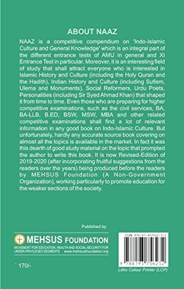 This book containing all the subject of indo islamic subject which comes in Aligarh muslim University entrance Exam (amu entrance exam ). General knowledge is also covered in this book so the students can prepare for the best in the A.M.U ENTRANCE preparation. naaz guide is the best option for the B.A., 10+2, and other Examination of AMU ENTRANCE EXAMINATION. which have approx 90% of syllabus of the Indo islamic and aligarh movement subject.