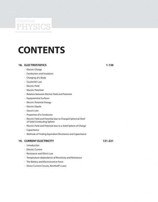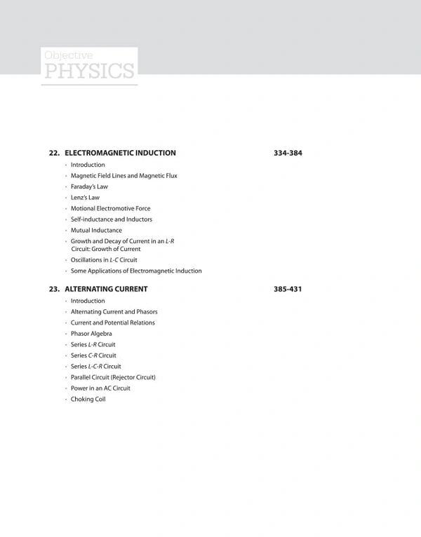 Just as the name suggests, the series “Complete Study Pack for Engineering Entrances” is a complete guide for the students aspiring for various Engineering entrances in India. The book ‘Physics Volume 2’ is designed in complete sync with the concepts of Physics class 12 th NCERT book, to assist the students in both- Engineering entrances as well as school studies. The principal element of this book is that it grants a clear and complete understanding of the concepts along with objective questions for practical advancement. It is an objective approach to ensure success for the students. This book features: 1. Complete coverage of NCERT class 12 th Physics Syllabus 2. Divided into 11 chapters 3. Clear understanding of concepts along with objective questions 4. Chapterwise practice exercises 5. Fully revised as per the latest examination pattern 6. 5000+ questions of all typologies 7. Workbook exercises at the end of the chapter 8. Complete solutions to all exercises 9. Easy to understand language 10. Collection of all Engineering Entrance questions Table of Contents Electrostatics, Current Electricity, Magnetic Effects of Current, Magnetism, Electromagnetic Induction, Alternating Current, Geometric Optics, Interference and Diffraction of Light, Modern Physics, Solids and Semiconductor Devices, Basics of Communications