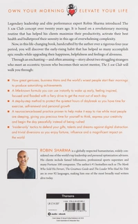 Legendary leadership and elite performance expert Robin Sharma introduced The 5am Club concept over twenty years ago, based on a revolutionary morning routine that has helped his clients maximize their productivity, activate their best health and bulletproof their serenity in this age of overwhelming complexity.Now, in this life-changing book, handcrafted by the author over a rigorous four-year period, you will discover the early-rising habit that has helped so many accomplish epic results while upgrading their happiness, helpfulness and feelings of aliveness.Through an enchanting―and often amusing―story about two struggling strangers who meet an eccentric tycoon who becomes their secret mentor, The 5am Club will walk you through:How great geniuses, business titans and the world’s wisest people start their mornings to produce astonishing achievementsA little-known formula you can use instantly to wake up early feeling inspired, focused and flooded with a fiery drive to get the most out of each dayA step-by-step method to protect the quietest hours of daybreak so you have time for exercise, self-renewal and personal growthA neuroscience-based practice proven to help make it easy to rise while most people are sleeping, giving you precious time for yourself to think, express your creativity and begin the day peacefully instead of being rushed‘Insider-only’ tactics to defend your gifts, talents and dreams against digital distraction and trivial diversions so you enjoy fortune, influence and a magnificent impact on the worldPart manifesto for mastery, part playbook for genius-grade productivity and part companion for a life lived beautifully, The 5am Club is a work that will transform your life. Forever.